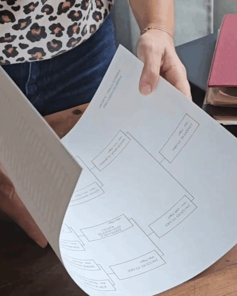 Chez Passeuse d’histoires, je crée des arbres généalogiques sur mesure et des carnets de famille modernes : de beaux objets à feuilleter, à transmettre ou à offrir.